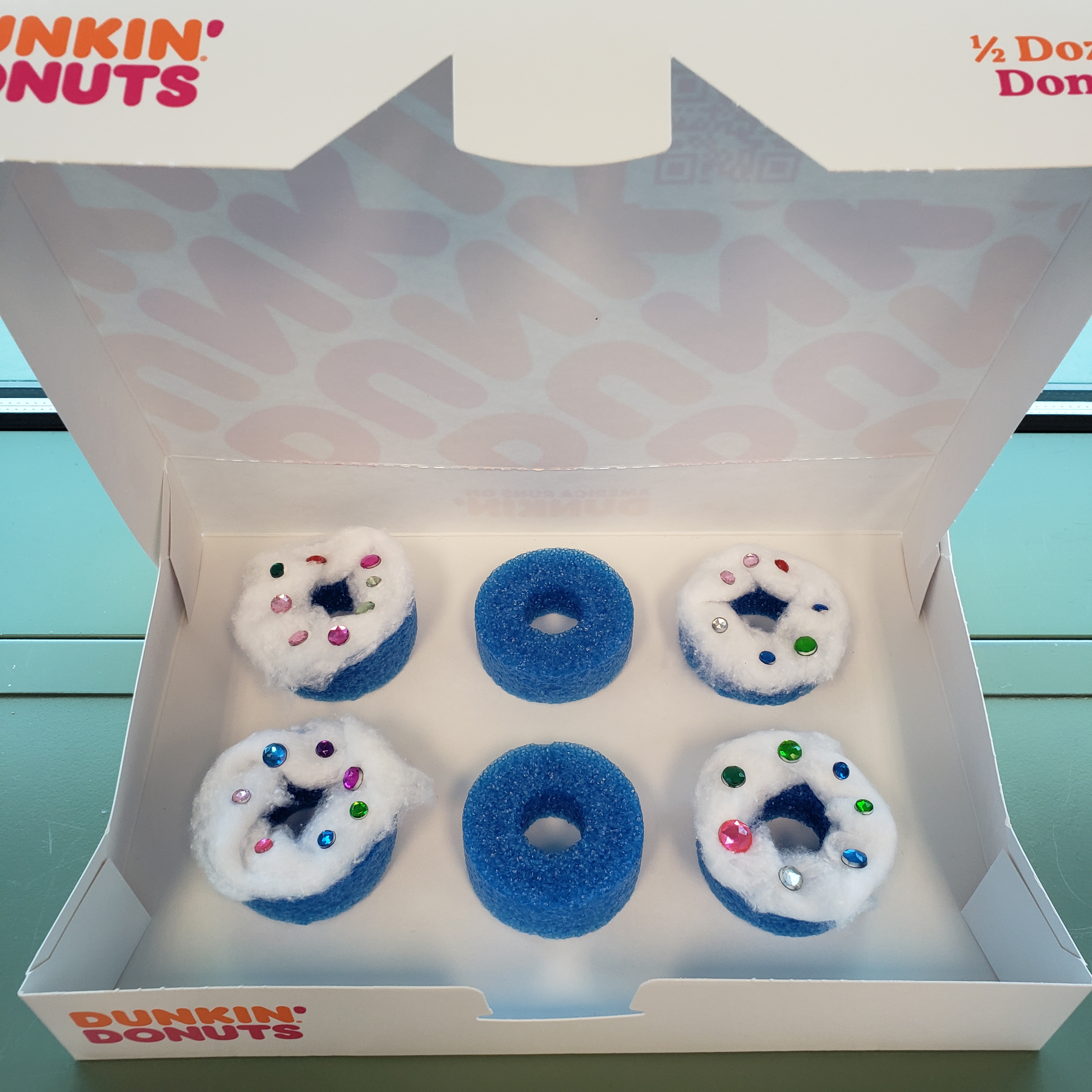 Craft kits available at library for registered patrons include: Glue, bag of gemstones (I used gemstones because I had leftovers from another program. You can also use cut up pipe cleaners or yarn for sprinkles), 5 cotton balls, 6 pool noodle circles (Each pool noodle was cut into 15 circles), tweezers