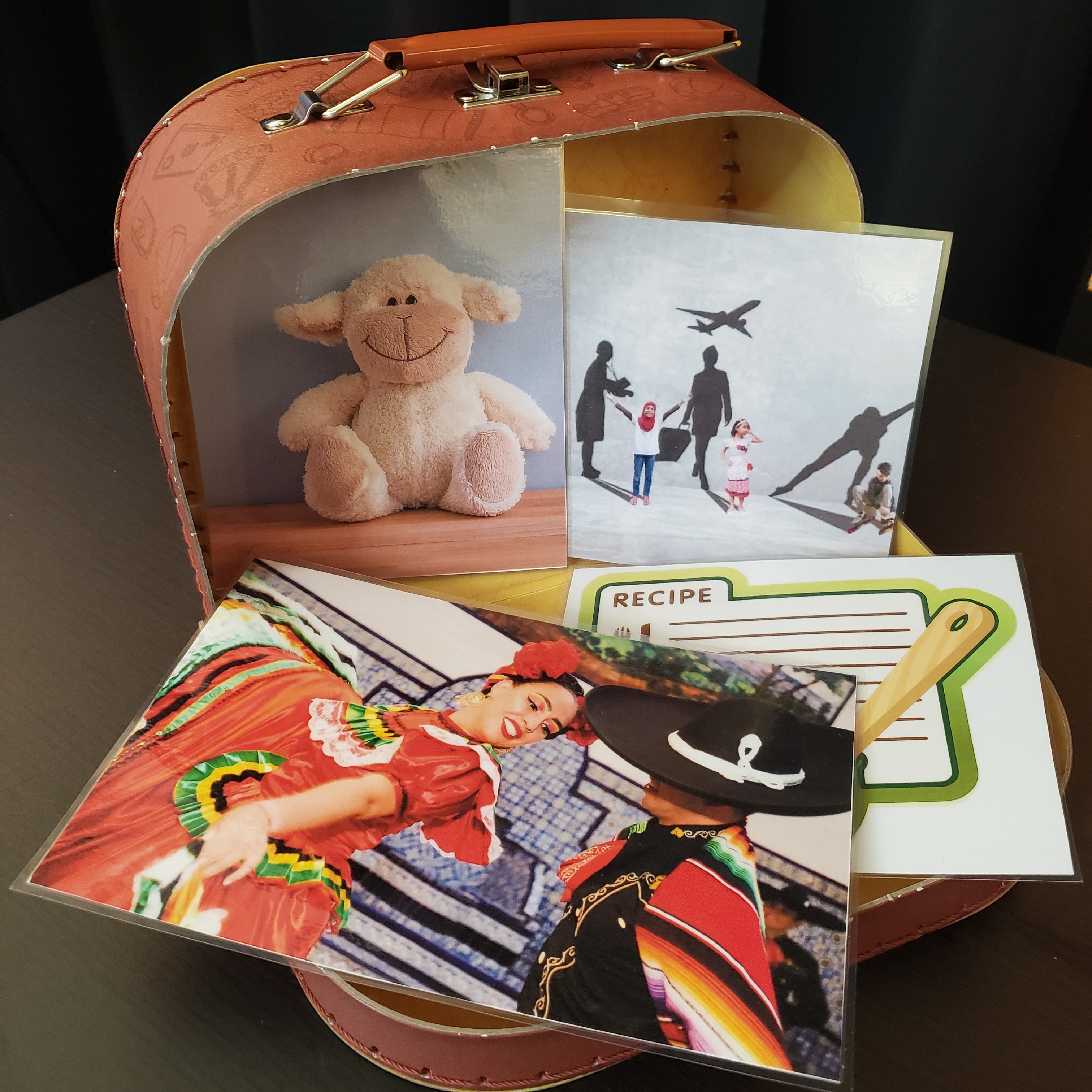 I put several pictures on the flannel board. I took one off at a time, had a conversation about the picture, and asked if it would be something that could fit inside a suitcase. This was a super idea from Natalie Renee at Storytime Solidarity on FriendFace.